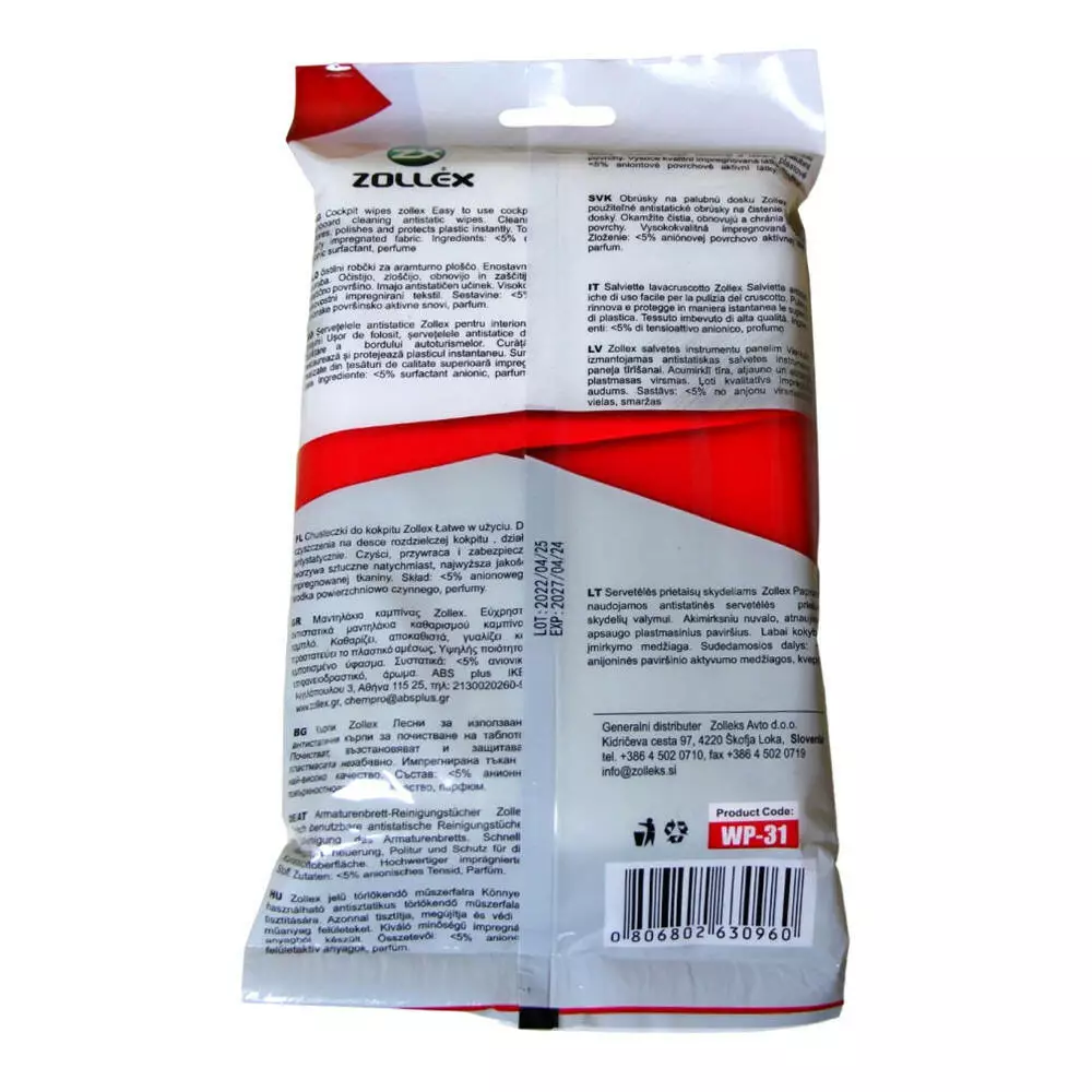 Салфетки влажные для авто и бытовых потребностей Zollex WP-31 (уп. 30 шт.)