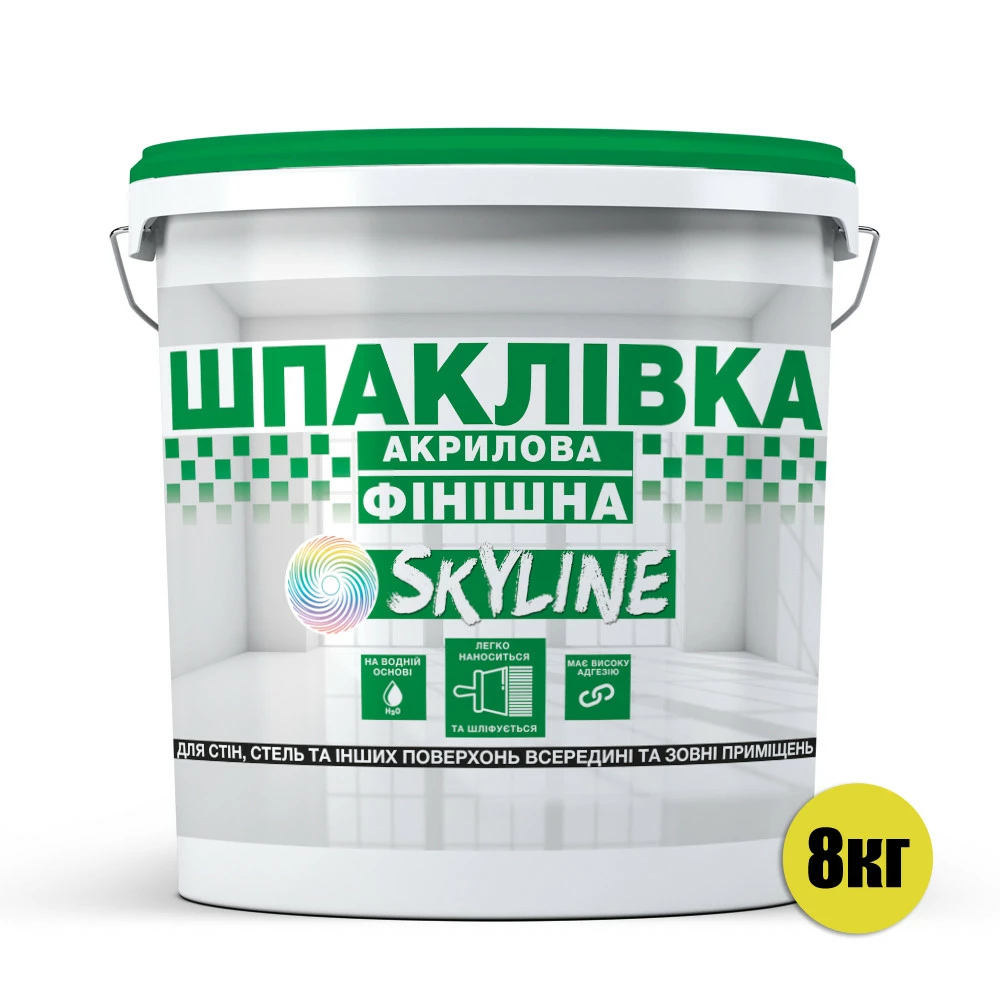 Шпаклевка акриловая финишная, готовая к применению для внутренних и наружных работ SkyLine Белоснежная 8 кг