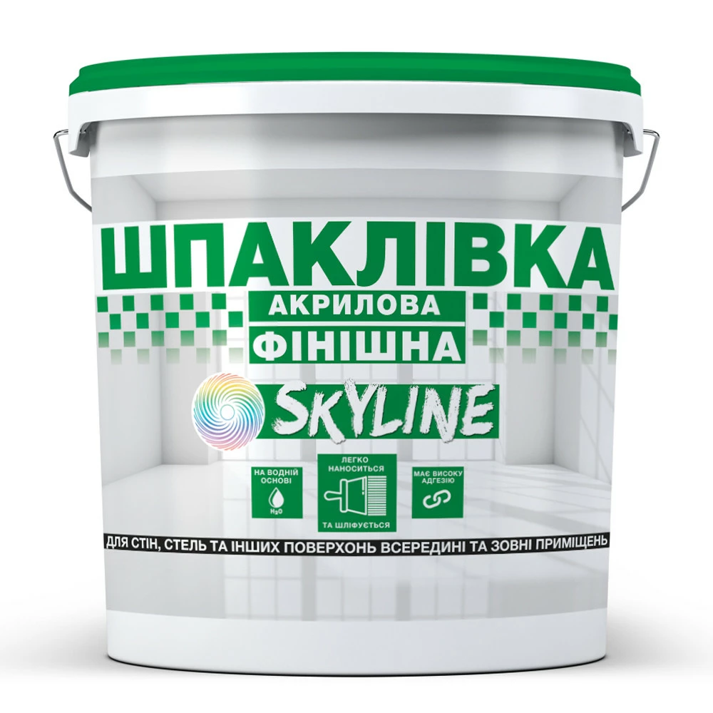 Шпаклевка акриловая финишная SkyLine предназначена для выполнения окончательной тонкослойной высококачественной отделки стен, потолков и других различных видов поверхностей внутри и снаружи помещений. Рекомендуется для отделки фасадов и интерьеров с созданием различных фактур. Шпаклевка легко наносится и шлифуется, быстро сохнет. Не желтеет. Имеет отличную адгезию к различным типам основ. Не содержит органических растворителей. Значительно уменьшает расход лакокрасочных материалов, которые наносятся после шпаклевания. Без запаха.