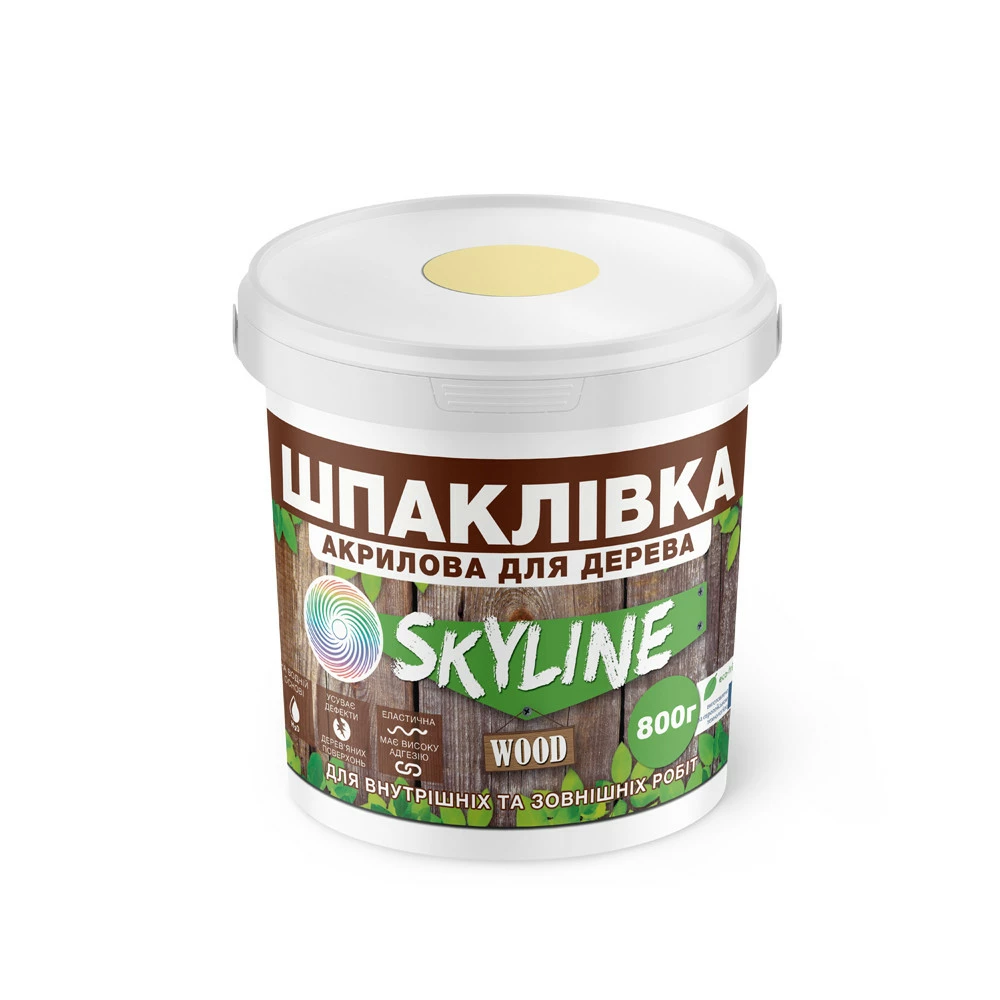 Шпаклевка для дерева акриловая для внутренних и наружных работ SkyLine Wood (Скайлайн Вуд). Водоразбавляемая. Готовая к применению. Эластичная, с высокой адгезией к разным типам основ. Быстро сохнет, легко шлифуется, заполняет поры. Устраняет дефекты любых деревянных поверхностей. Не содержит органических растворителей. Уменьшает расход лакокрасочных материалов, которые наносятся после шпаклевания. Имитирует оттенки дерева. Без запаха.