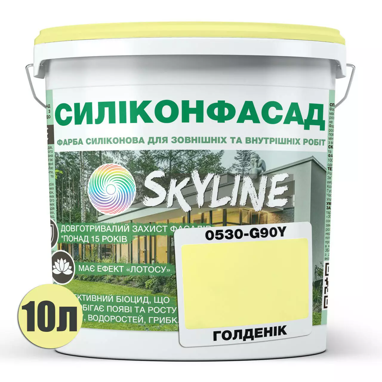 Цветная Фасадная Силиконовая Краска «Силиконфасад» SkyLine 0530-G90Y Голденик 10л