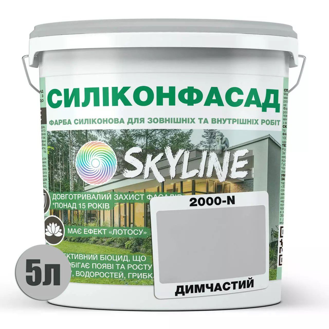 Цветная Фасадная Силиконовая Краска «Силиконфасад» SkyLine 2000-N Дымчатый 5л