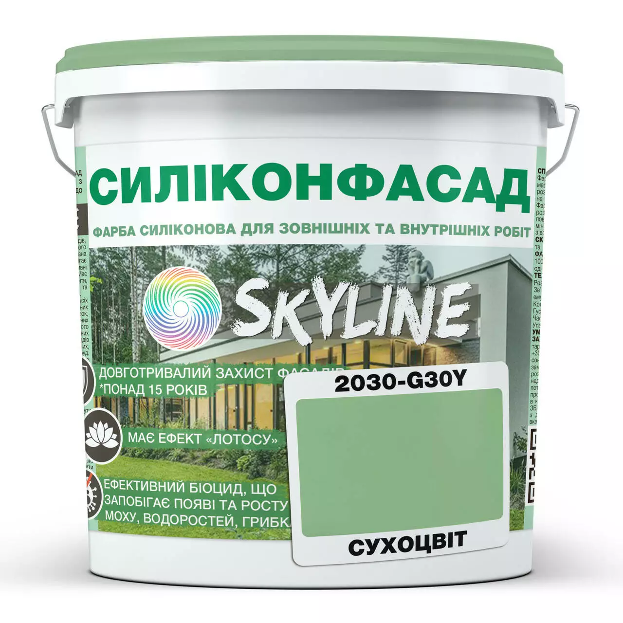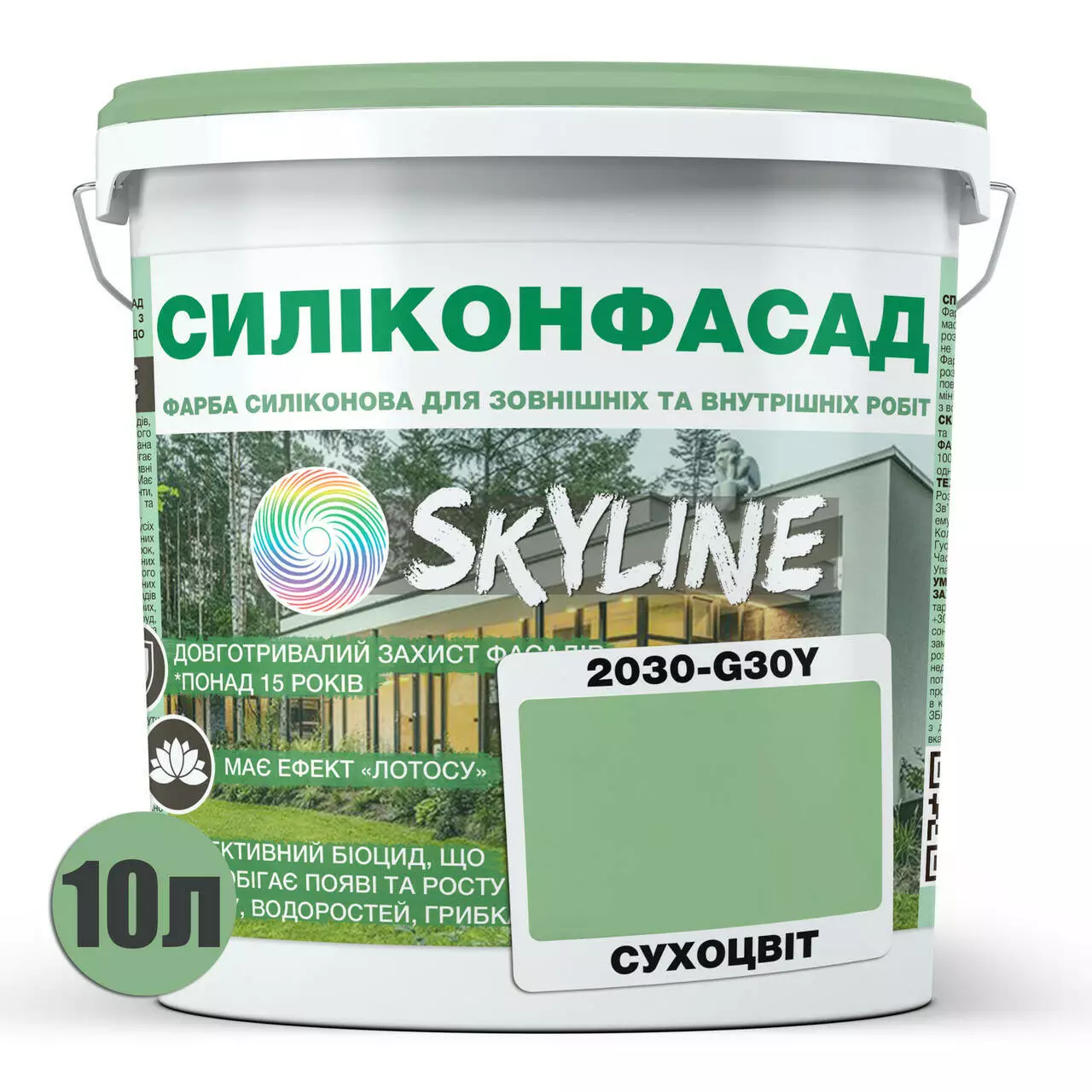 Цветная Фасадная Силиконовая Краска «Силиконфасад» SkyLine 2030-G30Y Сухоцвет 10л