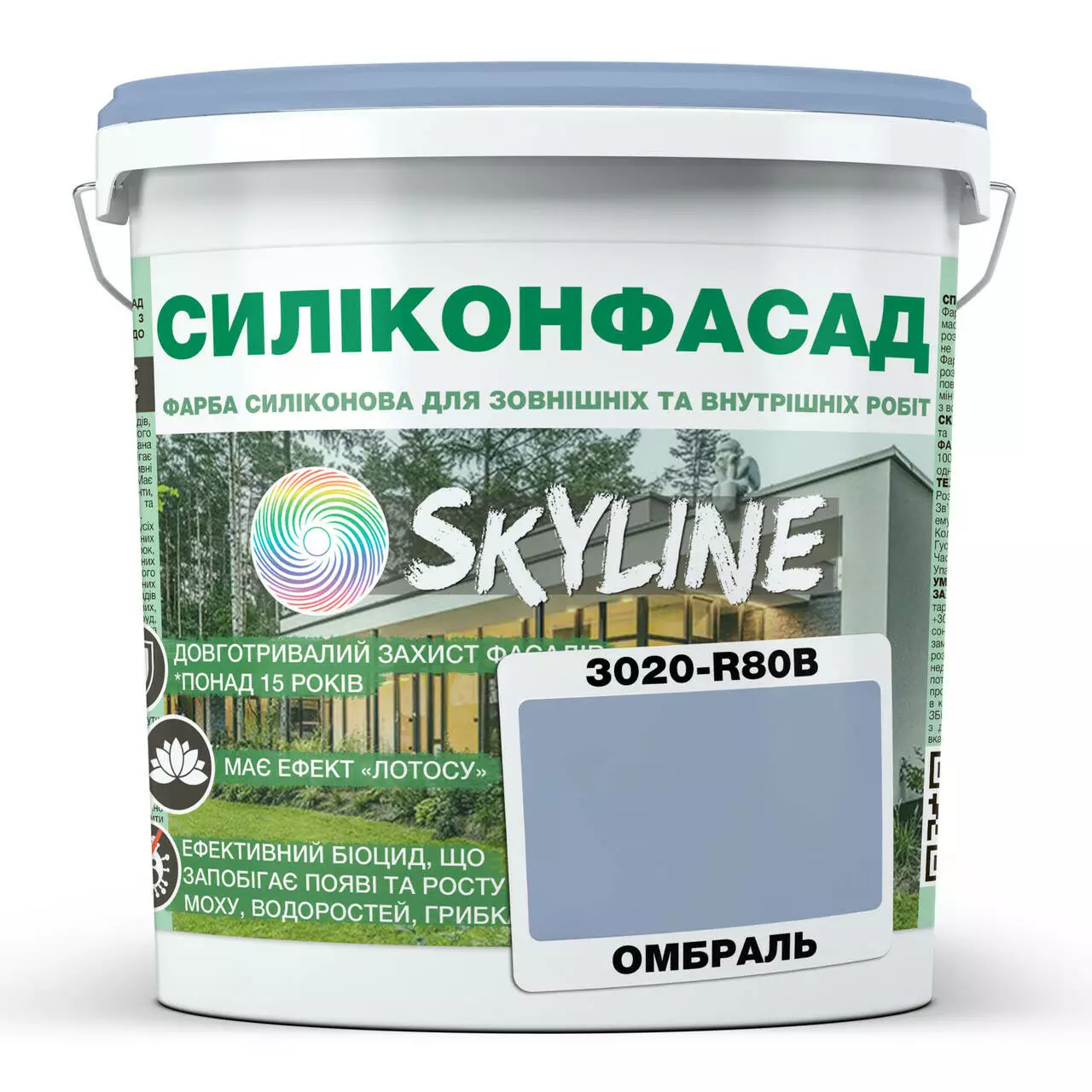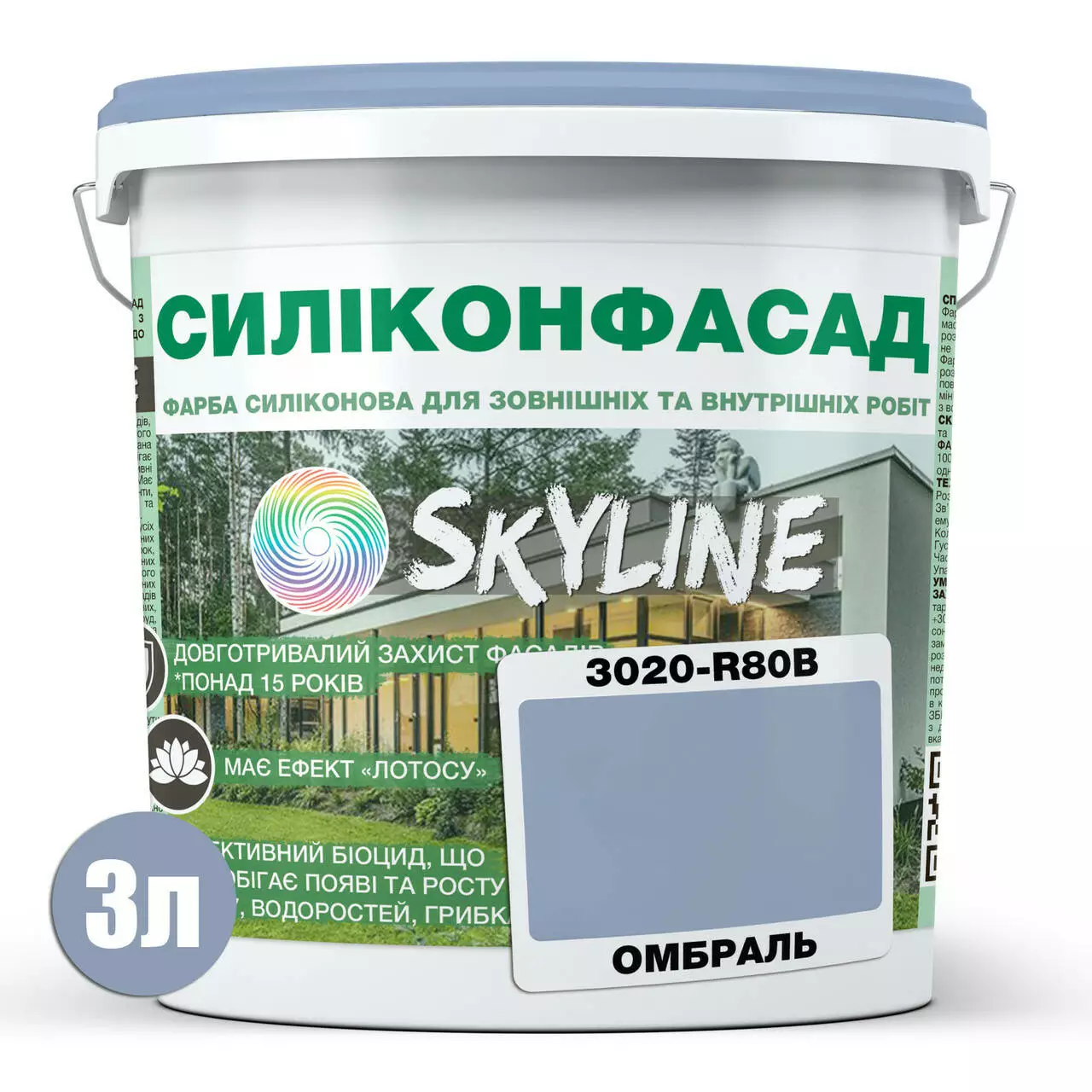 Цветная Фасадная Силиконовая Краска «Силиконфасад» SkyLine 3020-R80B Омбраль 3л