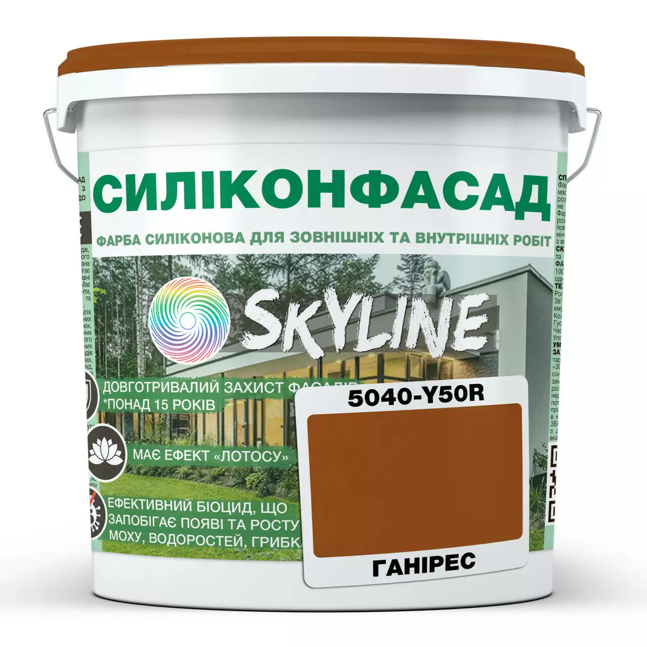 Цветная Фасадная Силиконовая Краска «Силиконфасад» SkyLine 5040-Y50R (C) Ганирес 10л