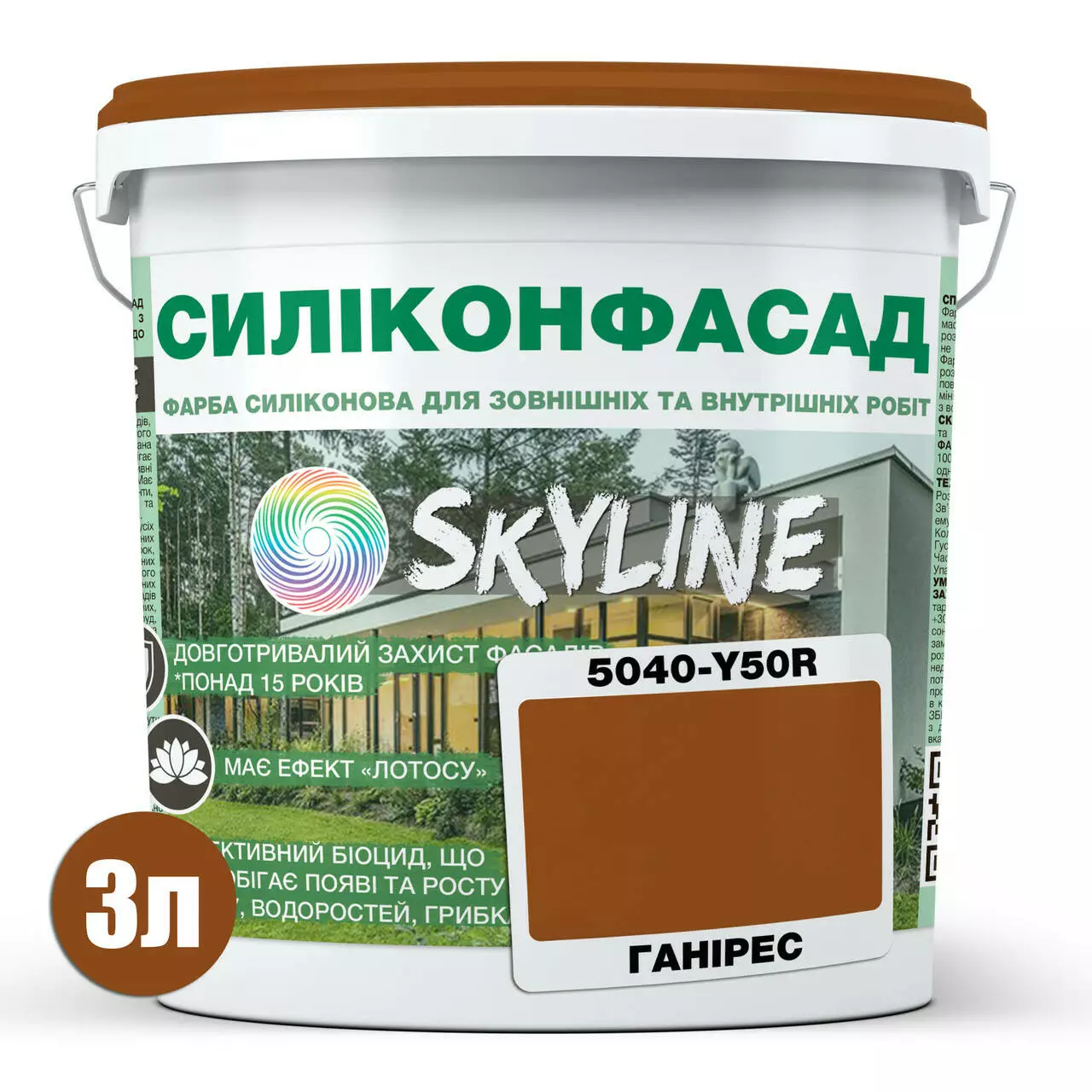 Цветная Фасадная Силиконовая Краска «Силиконфасад» SkyLine 5040-Y50R (C) Ганирес 3л