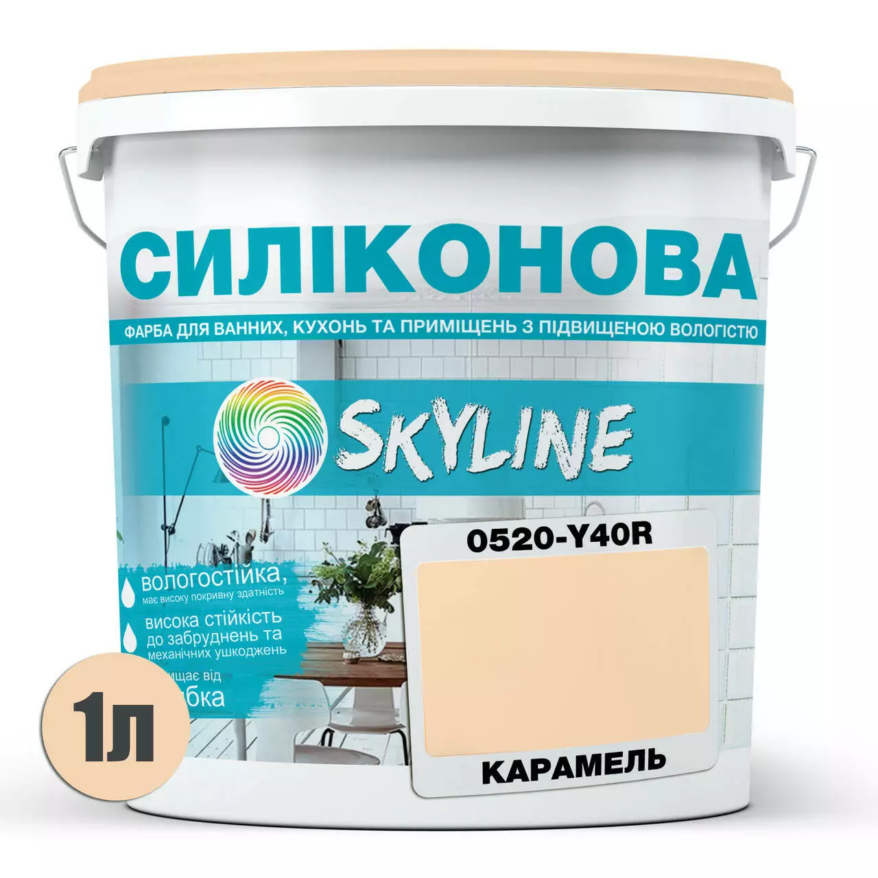 Цветная Краска СИЛИКОНОВАЯ Skyline для влажных помещений 0520-Y40R Карамель 1л
