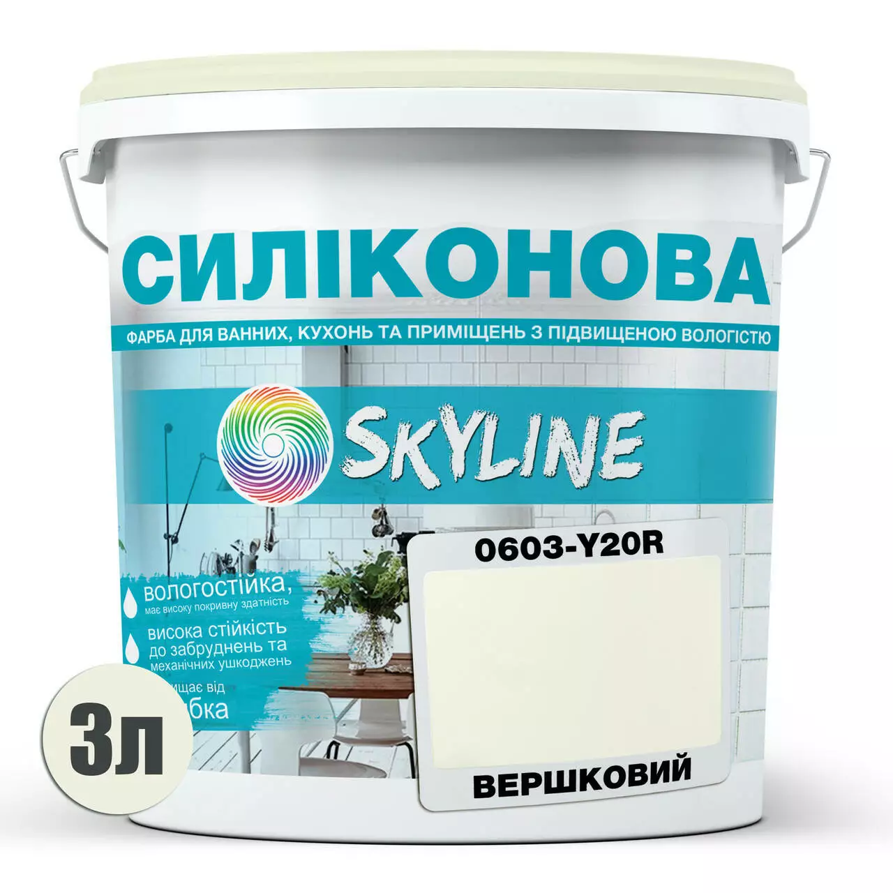 Цветная Краска СИЛИКОНОВАЯ Skyline для влажных помещений 0603-Y20R Сливочный 1л