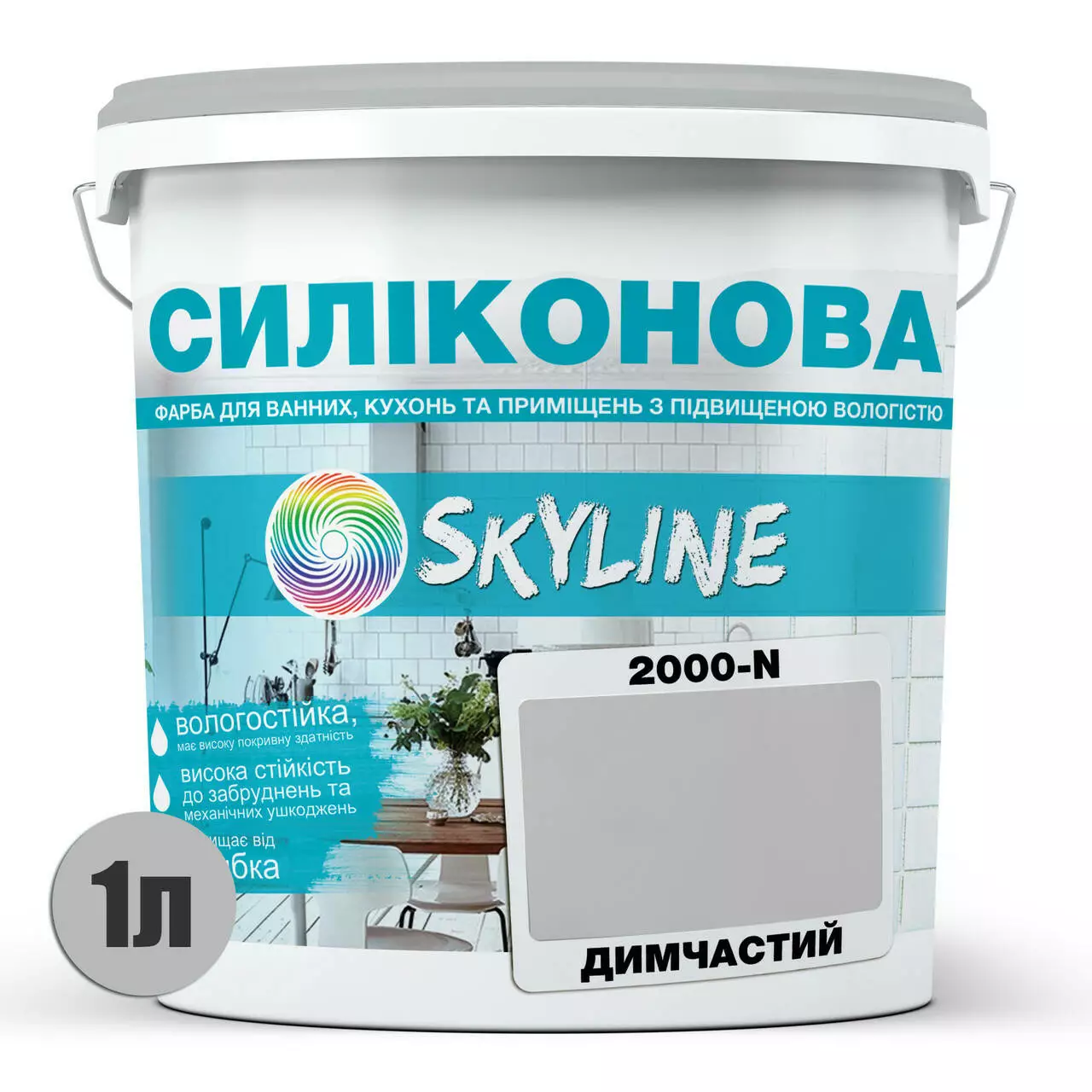 Цветная Краска СИЛИКОНОВАЯ Skyline для влажных помещений 2000-N Дымчатый 1л