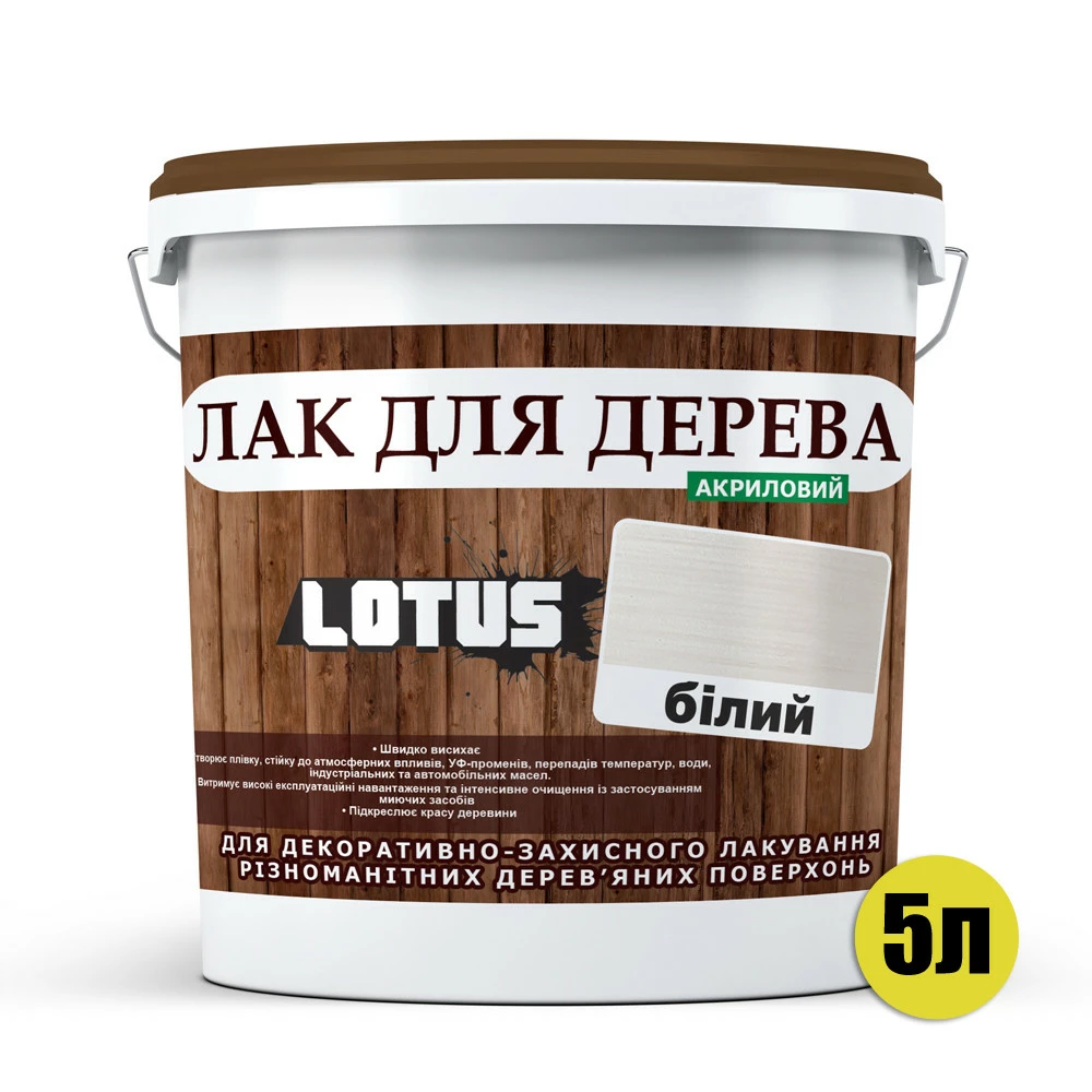 Цветной Лак для Дерева Lotus Глянец Белый 5 л