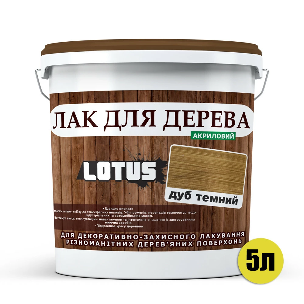 Цветной Лак для Дерева Lotus Глянец Темный дуб 5 л