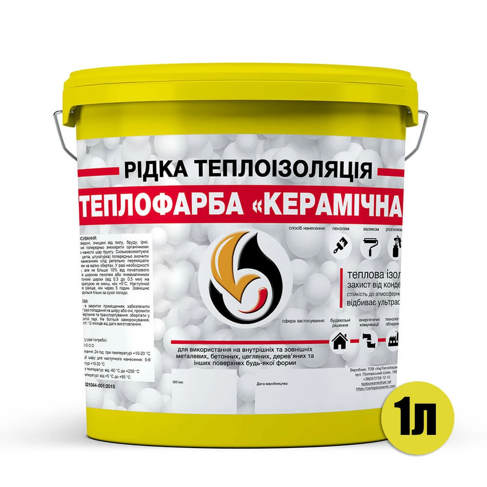 Жидкая теплоизоляция для утепления любых поверхностей Теплокраска Керамическая ЖЕЛТАЯ 1л